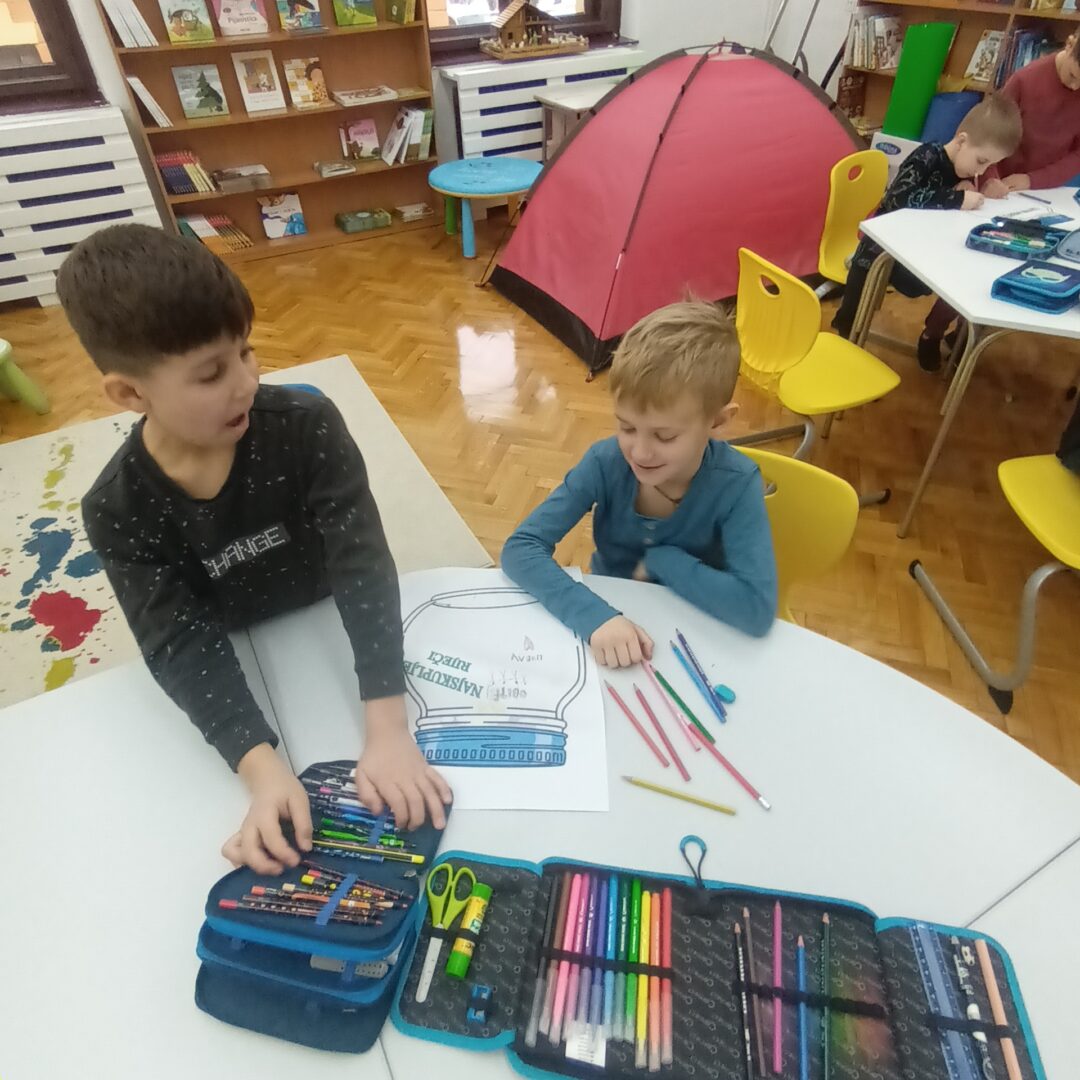 Budući da riječi toliko utječu na nas, željeli smo to osvijestiti i kod naših malih prvašića. Nakon čitanja slikovnice „Velika tvornica riječi“ autorice Agnes de Lestrade i razgovora o pročitanom, učenici su imali stvaralački zadatak u kojem su mogli nacrtati ili napisati koje su riječi za njih najskuplje, koje ih nasmijavaju, koje ih ljute te koje ih plaše.