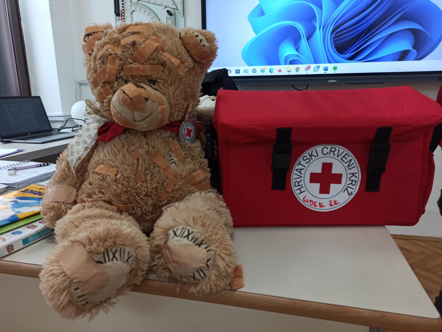 Učenicima 1. a u posjet je došla teta Amanda iz Crvenog križa i uz pomoć slikovnice i medvjedića naučila ih kako pružiti prvu pomoć unesrećenima u raznim nezgodama. Djeca su praktično isprobavala tehnike prve pomoći i učila o načinima prepoznavanja situacija u kojima treba djelovati. Teško je procijeniti je li veće veselje bilo kad su dobili zavoje i sami previjali ruke i noge ili zbog čokoladice…koju su sačuvali za desert nakon ručka.